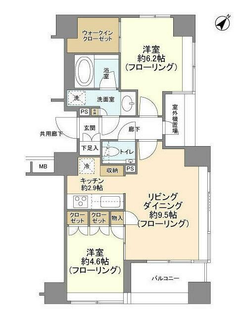 | 間取り詳細 | LDK:12.4畳 洋室:6.2畳、4.6畳 |