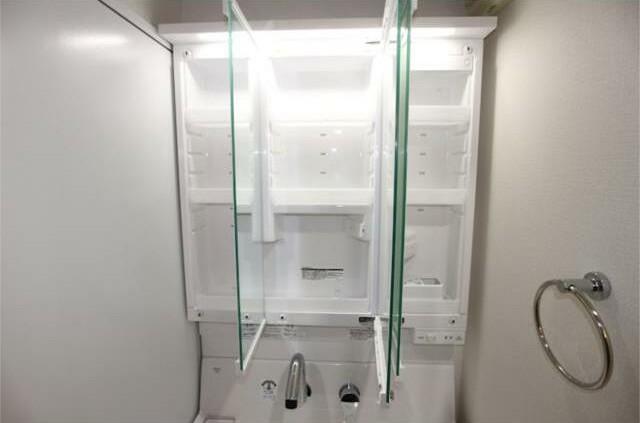 【 マンション 】三面鏡付洗髪洗面化粧台やグリル付システムキッチン等の充実設備