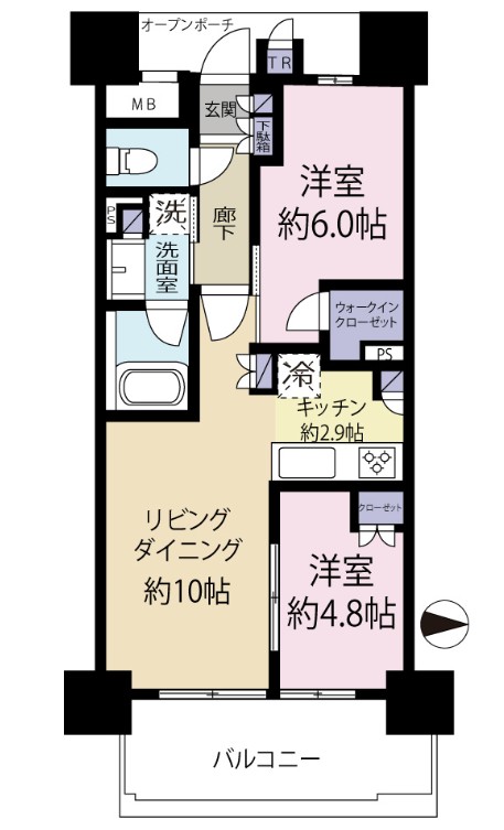 | 間取り詳細 | LDK:12.9畳 洋室:6畳、4.8畳 |
