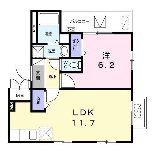 | 間取り詳細 | LDK:11.7畳 洋室:6.2畳 |