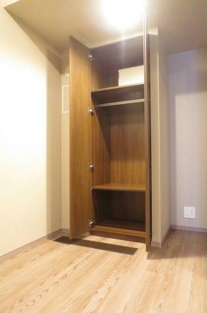 電子ピアノが相談可能な新築の1LDKはシューズインクローゼットがあり収納豊富。ディスポーザーや浄水器、グリル付のカウンターキッチンや追い炊き、浴室乾燥機、三面鏡付独立洗面台、温水洗浄便座等の設備が充実