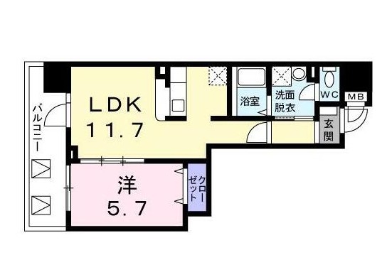 | 間取り詳細 | LDK:11.7畳 洋室:5.7畳 |