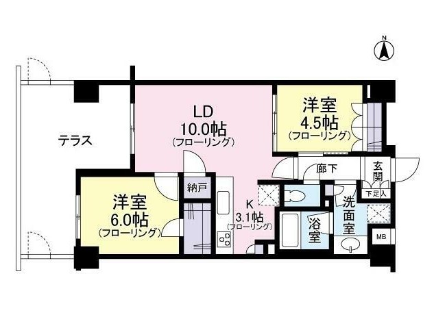 | 間取り詳細 | LDK:13.1畳 洋室:6畳、4.5畳 |