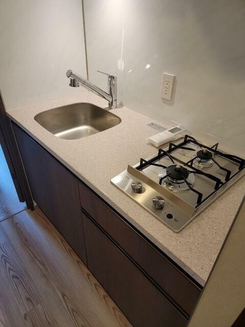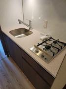 高田馬場駅徒歩4分、バイク置場や宅配ボックス等の共用設備も充実の新築分譲賃貸マンション。東向きの1Kは2口ガスのシステムキッチンや追い炊き、浴室乾燥機、独立洗面化粧台、タンクレストイレ等の設備が充実