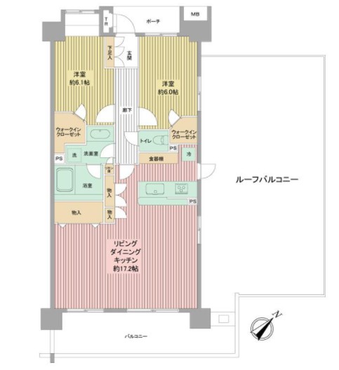 | 間取り詳細 | LDK:17.2畳 洋室:6.1畳、6畳 |
