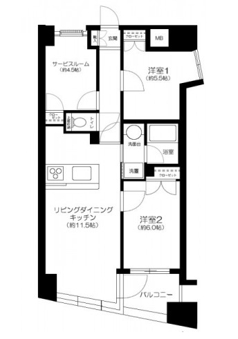 | 間取り詳細 | LDK:11.5畳 洋室:6畳、5.5畳 S:4.5畳 |