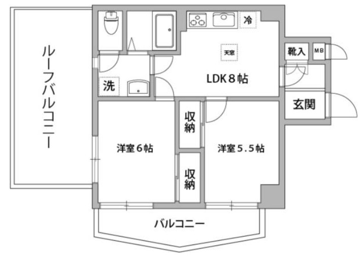 | 間取り詳細 | LDK:8畳 洋室:6畳、5.5畳 |