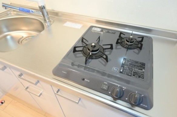 南西向き、角部屋、二面採光の室内はインターネット利用料が無料。浴室乾燥機や2口ガスのシステムキッチン、シャンプードレッサー、温水洗浄便座、室内物干し、エアコン等の設備が充実したデザイナーズマンション