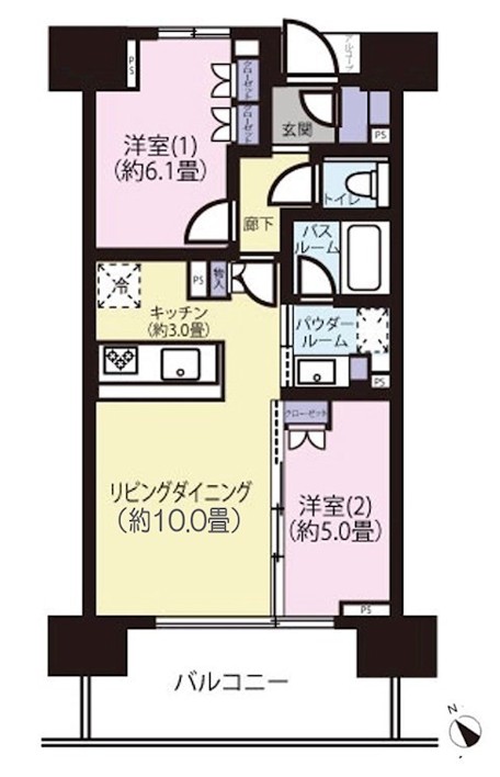 | 間取り詳細 | LDK:13畳 洋室:6.1畳、5畳 |