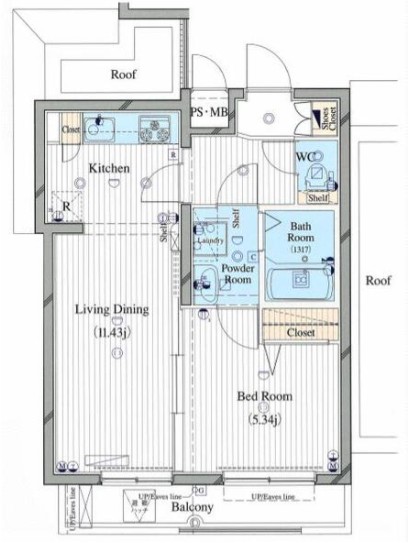 | 間取り詳細 | LDK:11.43畳 洋室:5.34畳 |