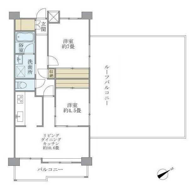 | 間取り詳細 | LDK:10.6畳 洋室:7畳、4.5畳 |