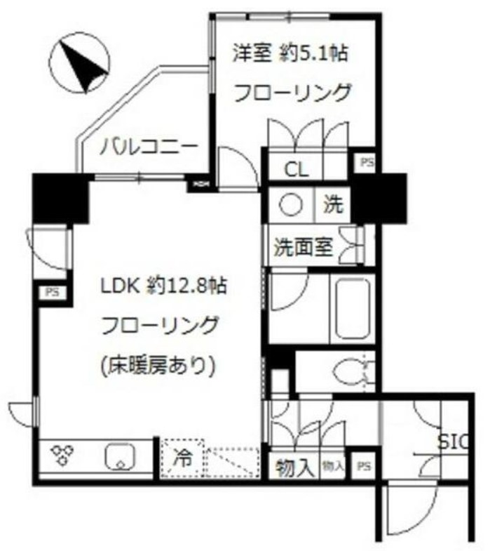 | 間取り詳細 | LDK:12.8畳 洋室:5.1畳 |
