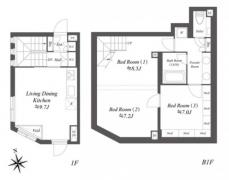 | 設備・条件 | デザイナーズ/宅配ボックス/敷地内ごみ置き場/角住戸/2面採光/オートロック/防犯カメラ/メゾネット/システムキッチン/ガスレンジ付/3口以上コンロ/グリル付/都市ガス/バストイレ別/オートバス/追焚機能浴室/浴室乾燥機/温水洗浄便座/洗面所独立/三面鏡付洗面化粧台/24時間換気システム/フローリング/室内洗濯置/クロゼット/シューズボックス/BS・CS/ネット使用料不要/光ファイバー/TVインターホン/保証人不要/フリーレント/エアコン/エアコン3台 |