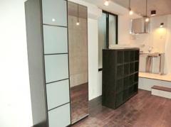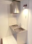 南向き、角部屋、複数面採光の風通しに優れた1K。コンクリート打ち放しの壁をスポットライト照明がお洒落に照らすデザイナーズマンション。2口ガスのシステムキッチンや独立洗面台、浴室乾燥機等の設備も充実。