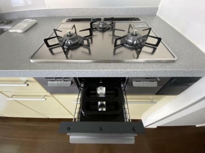 南西向きの室内はリビングに床暖房が入り、ディスポーザー、グリル付きの3口システムキッチンや追い炊き、浴室乾燥機、三面鏡付独立洗面台等の設備に優れ、内廊下やエレベーター2基等の共用設備も整う分譲賃貸