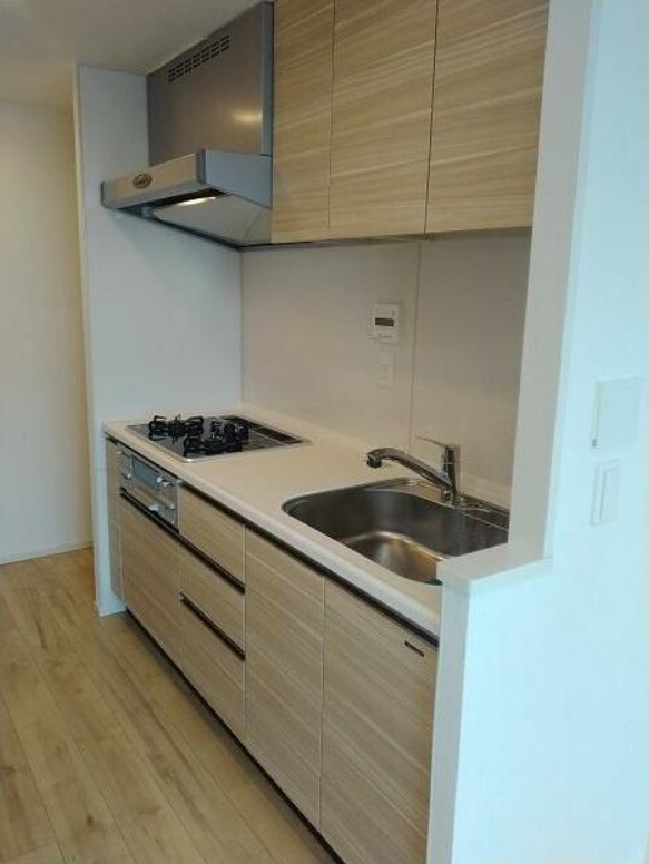 リビングに床暖房が入り、ウォークインクローゼットがある収納豊富な1LDK。ディスポーザー、グリル付きの3口システムキッチンや追い炊きフルオートバス、浴室乾燥機、独立洗面台等の設備に優れた分譲タワー
