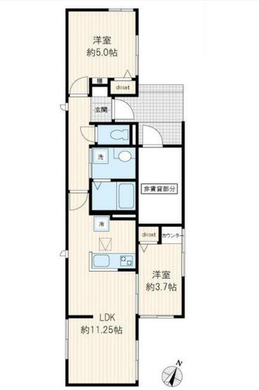 | 間取り詳細 | LDK:11.25畳 洋室:5畳、3.7畳 |