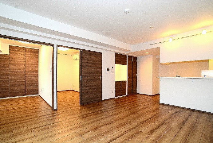 南西向きの2LDKはインターネット利用料が無料。リビングの床暖房やグリル付きの3口カウンターキッチン、追い炊きや浴室乾燥機付きのお風呂、三面鏡付独立洗面化粧台、温水洗浄便座等の設備が充実してます。