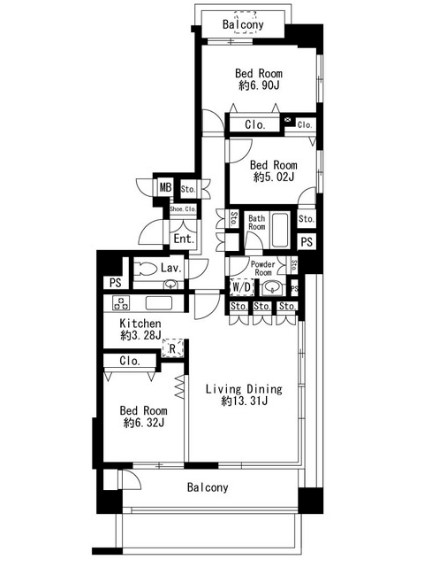 | 間取り詳細 | LDK:16.59畳 洋室:6.9畳、6.32畳、5.02畳 |