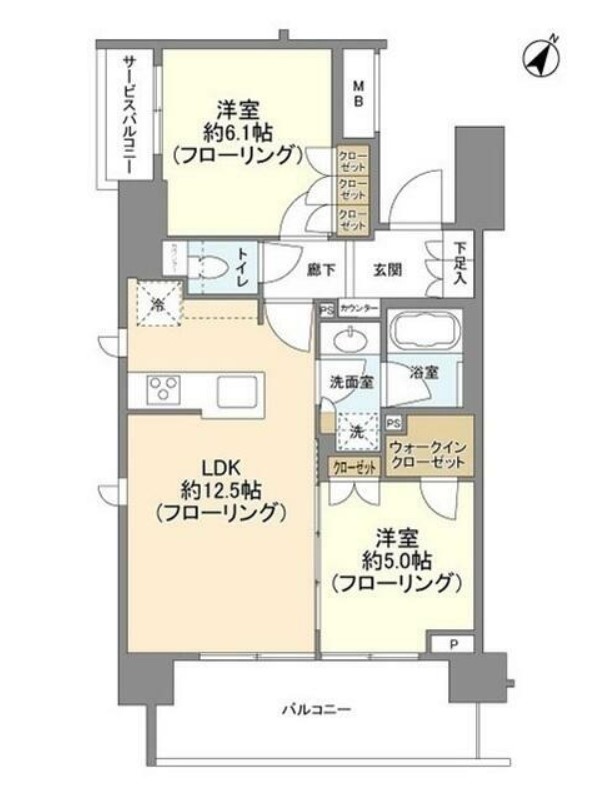 | 間取り詳細 | LDK:12.5畳 洋室:6.1畳、5畳 |