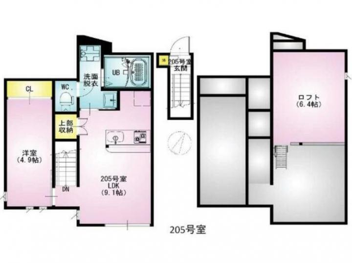 | 間取り詳細 | LDK:9.1畳 洋室:4.9畳 ロフト:6.4畳 |