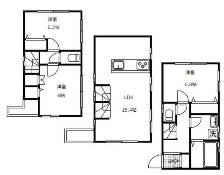 | 間取り詳細 | LDK:15.4畳 洋室:6.8畳、6.2畳、6畳 |