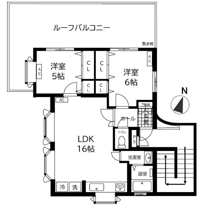 | 間取り詳細 | LDK:16畳 洋室:6畳、5畳 |