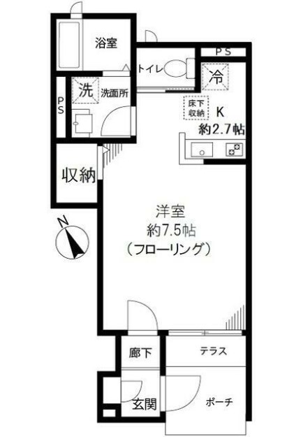 南西向きのワンルームは2口ガスのシステムキッチンや追い炊き、浴室乾燥機、シャンプードレッサー、温水洗浄便座、モニターフォン、エアコン等の設備に優れ、床下収納があり収納豊富。駐輪場が1台無料で駐輪可能。
