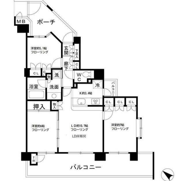 | 間取り詳細 | LDK:14.1畳 洋室:7畳、6畳、5.1畳 |
