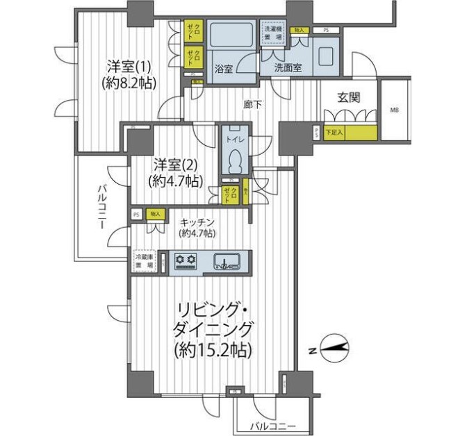 | 間取り詳細 | LDK:19.9畳 洋室:8.2畳、4.7畳 |