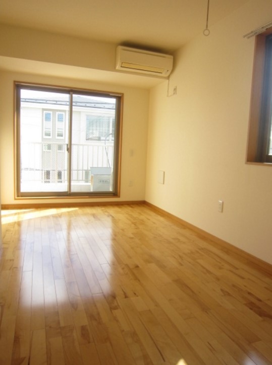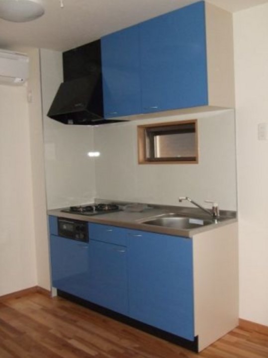 南向き、角部屋、3階建てのメゾネットタイプの2DKは全室にエアコンがついており、グリル付きの2口ガスシステムキッチンや独立洗面台、追い炊き、浴室乾燥機等の設備に優れ、3階にルーフバルコニーがあります