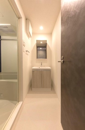 南向き、角部屋、二面採光の風通しに優れた1K。一部コンクリート打ち放しの壁をスポットライト照明が照らすお洒落な室内はインターネット利用料が無料。浴室乾燥機、独立洗面台、システムキッチン等の設備が充実