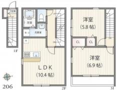 | 間取り詳細 | LDK:10.4畳 洋室:6.9畳、5.8畳 |