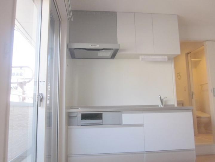 角部屋、二面採光の1LDKはIHのグリル付き3口システムキッチンや追い炊き、浴室乾燥機、独立洗面台、温水洗浄便座、エアコン、複層ガラス、モニターフォン等の設備に優れ、駐輪場やゴミ置場等の共用設備も充実