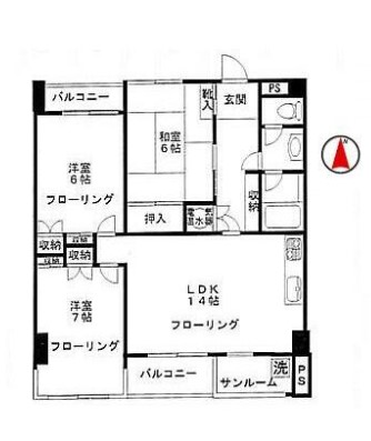 | 間取り詳細 | LDK:14畳 洋室:7畳、6畳 和室:6畳 |