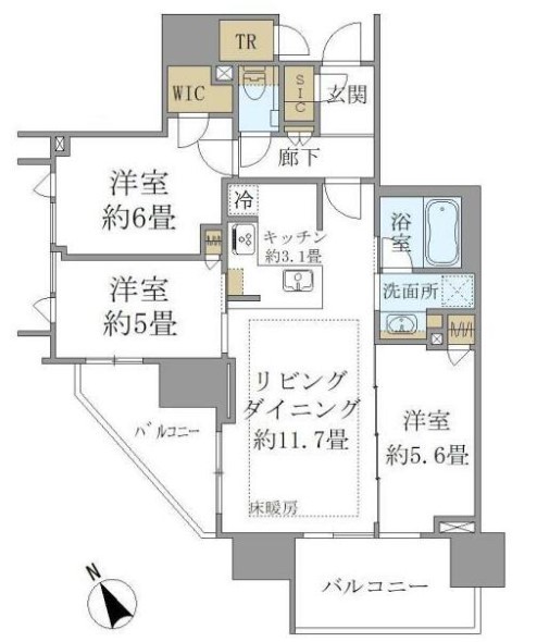 | 間取り詳細 | LDK:14.8畳 洋室:6畳、5.6畳、5畳 |