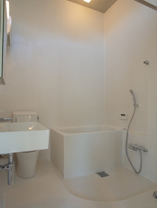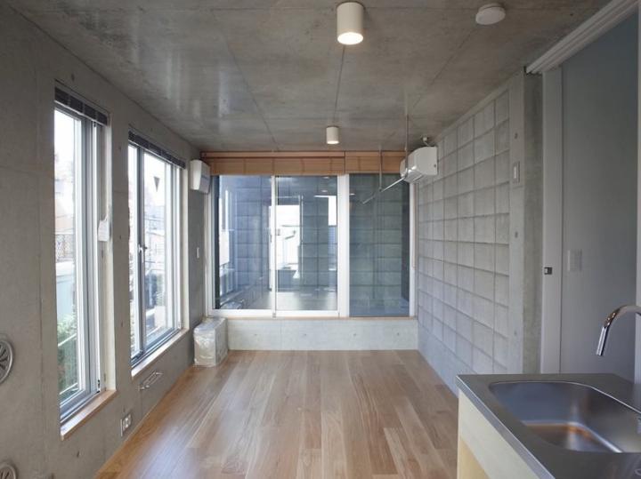 デザイナーズ/外壁コンクリート/内装コンクリート/宅配ボックス/駐輪場/南向き/角住戸/2面採光/南面リビング/オートロック/システムキッチン/ガスレンジ付/2口コンロ/都市ガス/オートバス/追焚機能浴室/浴室乾燥機/温水洗浄便座/洗面所独立/24時間換気システム/床暖房/テラス/フローリング/室内洗濯置/BS/光ファイバー/TVインターホン/事務所相談/保証人不要/初期費用カード決済可/エアコン/通風良好/陽当り良好