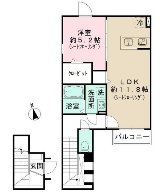 | 間取り詳細 | LDK:11.8畳 洋室:5.2畳 |