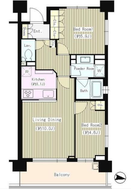 | 間取り詳細 | LDK:13.1畳 洋室:5.9畳、4.6畳 |