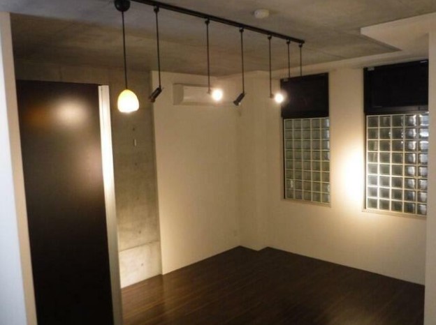【礼金0ヶ月】内外装一部コンクリート打ち放し、お洒落な室内をスポットライト照明が照らす11.7畳のワンルーム。IHシステムキッチンや浴室乾燥機、独立洗面台、インターネット利用料が無料と設備も充実