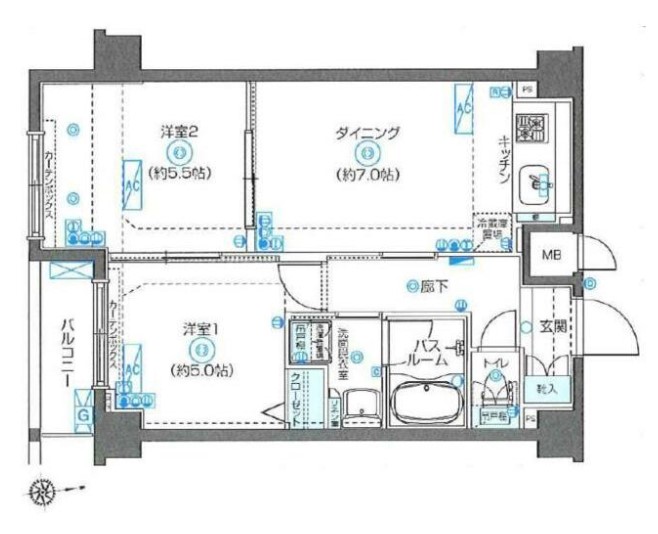 | 間取り詳細 | DK:7畳 洋室:5.5畳、5畳 |