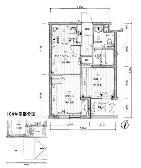 | 間取り詳細 | DK:5.8畳 洋室:5.5畳、4.5畳 |