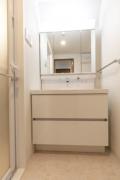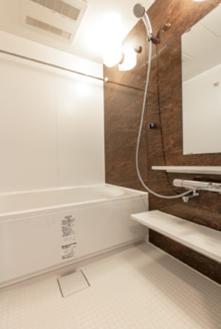 角部屋、二面採光の1LDKはグリル付きの3口ガスカウンターキッチンや追い炊き、浴室乾燥機、三面鏡付独立洗面化粧台、温水洗浄便座、エアコン等の設備に優れ、宅配ボックスや1台無料の駐輪場等の共用設備も充実