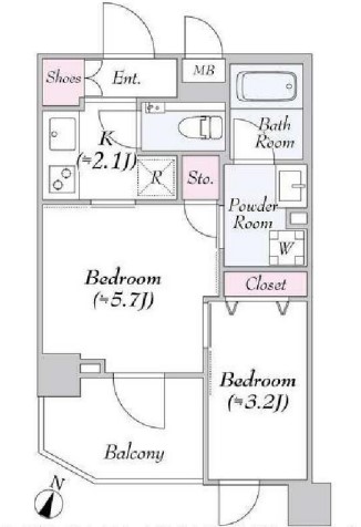 | 間取り詳細 | 洋室:5.7畳、3.2畳 |