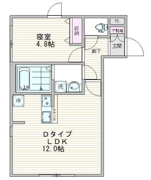 | 間取り詳細 | LDK:12畳 洋室:4.8畳 |