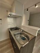 角部屋、複数面採光の1LDKは犬、猫の飼育が1匹のみ可能。インターネット(Wi-Fi)が無料で利用でき、2口ガスのカウンターキッチンや追い炊き、浴室乾燥機、独立洗面台、エアコン2基等の設備が充実。
