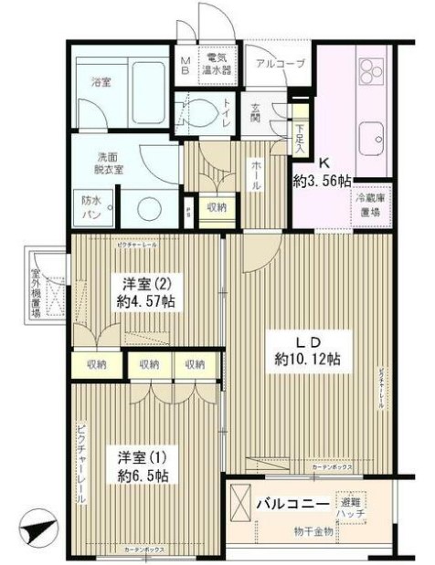 | 間取り詳細 | LDK:13.68畳 洋室:6.5畳、4.57畳 |