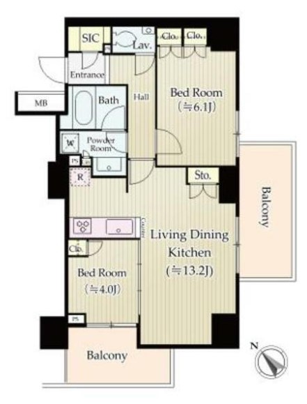 | 間取り詳細 | LDK:13.2畳 洋室:6.1畳、4畳 |