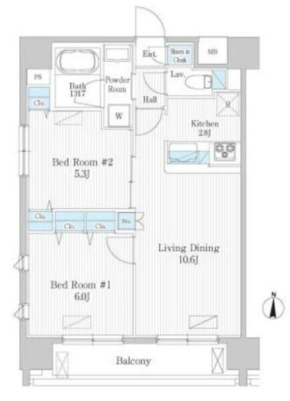 | 間取り詳細 | LDK:13.4畳 洋室:6畳、5.3畳 |