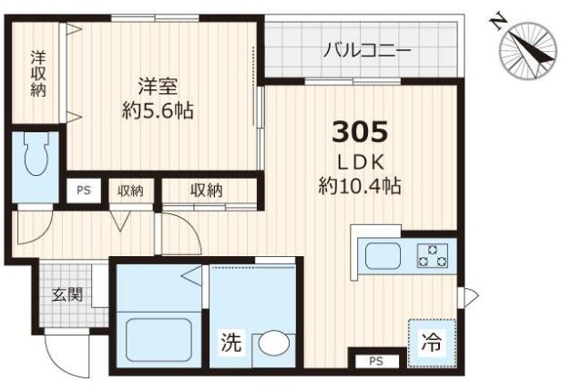 | 間取り詳細 | LDK:10.4畳 洋室:5.6畳 |